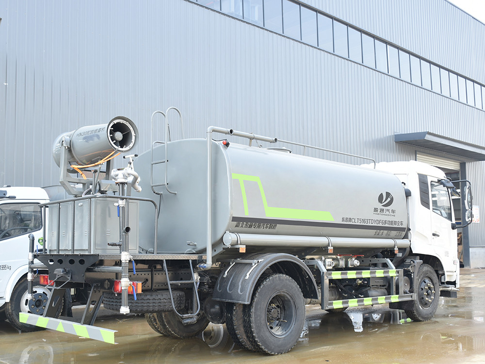 東風天錦12方抑塵車產品簡述 抑塵車又稱為綠化噴灑車、多功能灑水車、園林綠化灑水車。抑 塵車適合于各種路面沖洗,樹木、綠化帶、草坪綠化,道路、廠礦企業 施工建設,高空建筑沖洗。抑塵也可以作為運水車使用,**常見的車 型有綠化噴灑車、多功能灑水車、綠化灑水車幾大類。 我公司產品標配前噴(鴨嘴)、后沖、后灑、側噴、后置式工作 平臺,平臺上配置綠化水炮(可 360°旋轉,既可以調成柱狀,也可 以調成霧狀,更可以調成直沖狀、大雨、中雨、小雨、毛毛雨),配 備優質大功率專用灑水泵(可自吸自排,可從河里或池塘抽水到罐體), 取力器,雜物過濾網,消防接口,自流球閥系統、取力器、球閥、濾網 均為**標準產品,主管道加粗,法蘭墊、法蘭盤加厚,大通徑球閥。 整體具備性能優良安全可靠、效率高、流量大、維修方便等特點。